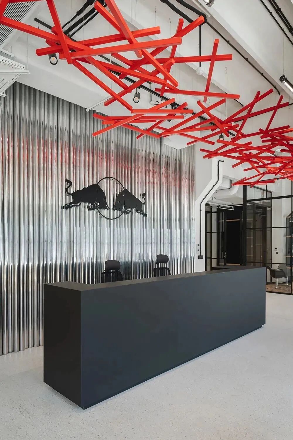 *Red Bull红牛波兰华沙总部办公室的接待区,有艺术装置与logo的结合
