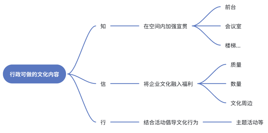 比如强调以人为本的文化理念下,行政服务可以通过增加下午茶频率/改善下午茶质量、在业务繁忙时提供加班餐等福利支持、给员工公益礼品...等,提升大家生活品质;