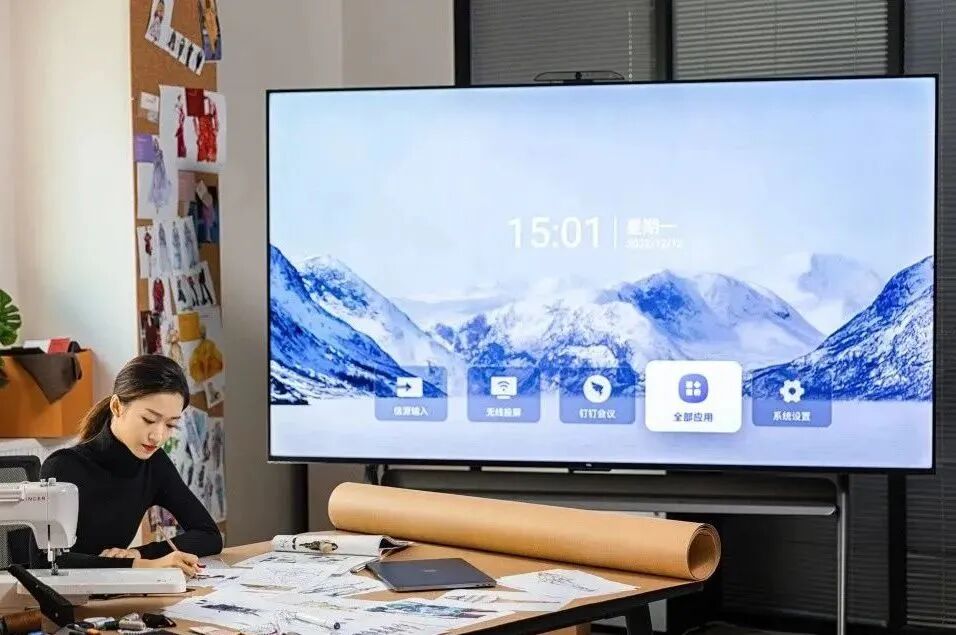 TCL智慧会议解决方案再度革新,全新超大会议巨幕100GA1搭载轻会议系统,聚合无线投屏、钉钉会议等常用功能,以轻简、便捷的方式助力商务场合更高效。