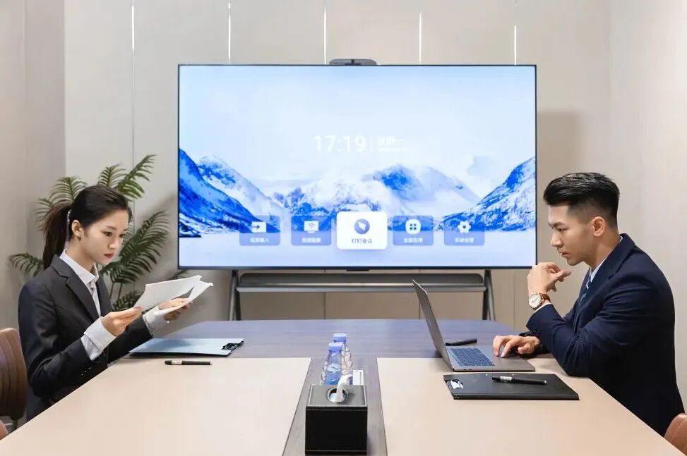洞悉客户办公场景对会议机的使用需求及常见痛点、难点,TCL推出智慧会议解决方案——全新的超大会议巨幕100GA1,搭载更专业的会议系统,以轻简、便捷的方式助力商务场合更高效。