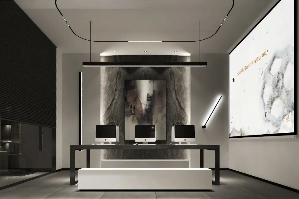 沉浸办公体验区由多个国内外知名办公品牌集合而成,结合未来办公发展,以“智慧、绿色”的概念,搭建虚拟样板房场景诠释未来办公空间,旨在打造“未来办公方式”,打造办公空间美学范本。