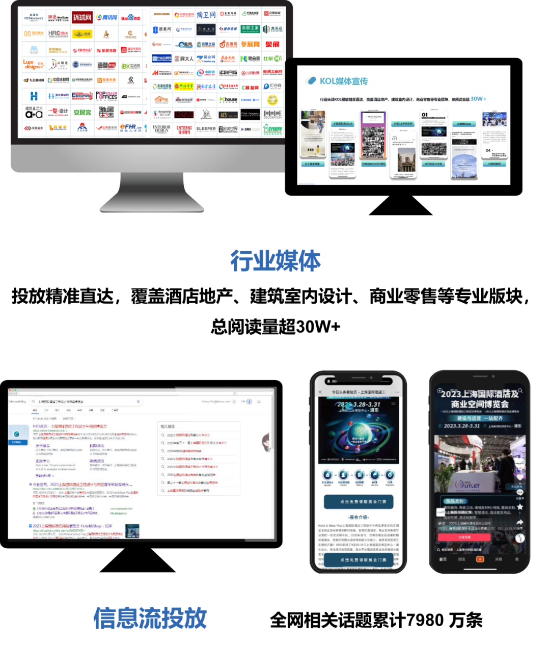 展会自身拥有全面的行业媒体矩阵,专注于业内建设与运营的各个领域。展会宣传涵盖行业协会、大众媒体、专业媒体、店商在线、新闻稿、微信、微博、短信提醒、电子期刊等多种渠道,高效助力展会品牌宣传。