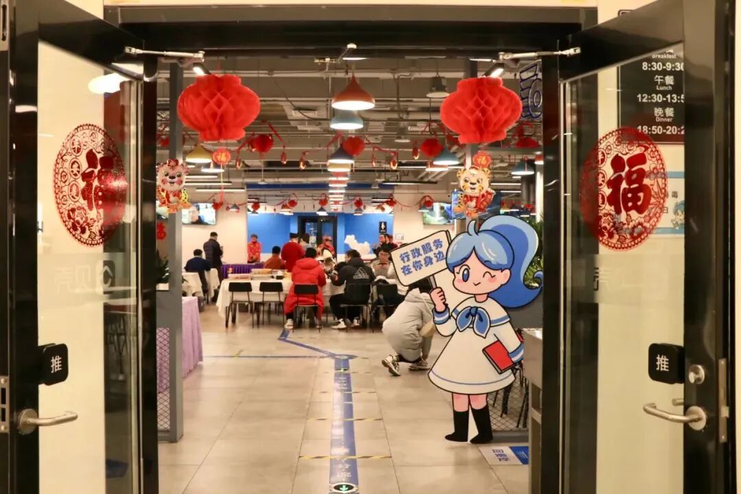 除了大家熟悉的春联、窗花、灯笼挂件之外,还可以在前台增加红色的桌花和摆件、更换大门及电梯的地垫等,当然别忘了给线上的办公系统也换个“新皮肤”。