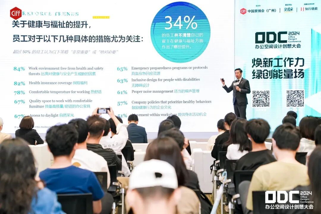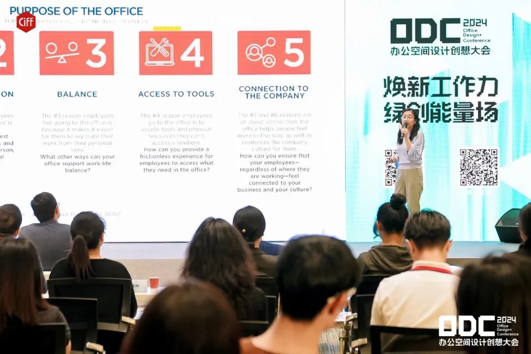 “绿色发展是高质量发展的底色,新质生产力本身就是绿色生产力。”她引用习总书记的话,又聚焦到办公领域,她表示,办公环境的设计不仅仅是关于形式与功能,更是关于人文关怀与绿色发展,如何打造既智能高效、又绿色低碳的办公环境成为时代新课题。这也是我们联合灵感家与知行晓政共同举办2024ODC办公空间设计创想大会的初衷。
