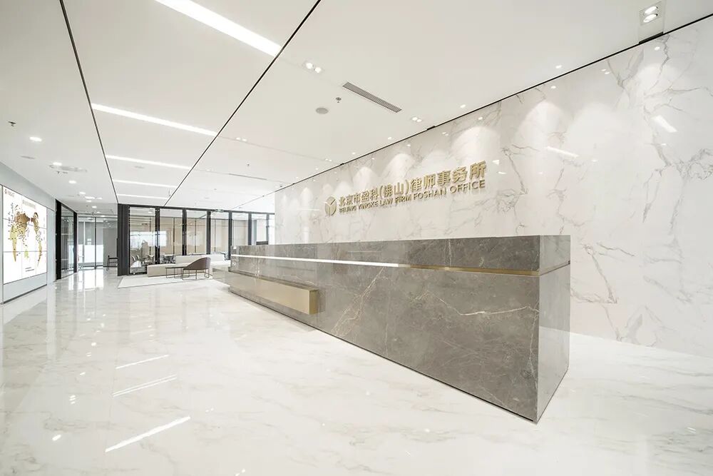 盈科律师事务所,从电梯厅进入到前台区域,迎面而来的是一个拥有充足的自然采光、视野开阔、极具创意的时尚空间。宽敞的前厅设有舒适开放的访客等候区,这里也用作内部团队的交流协作,营造出一个轻松舒适的休闲氛围。