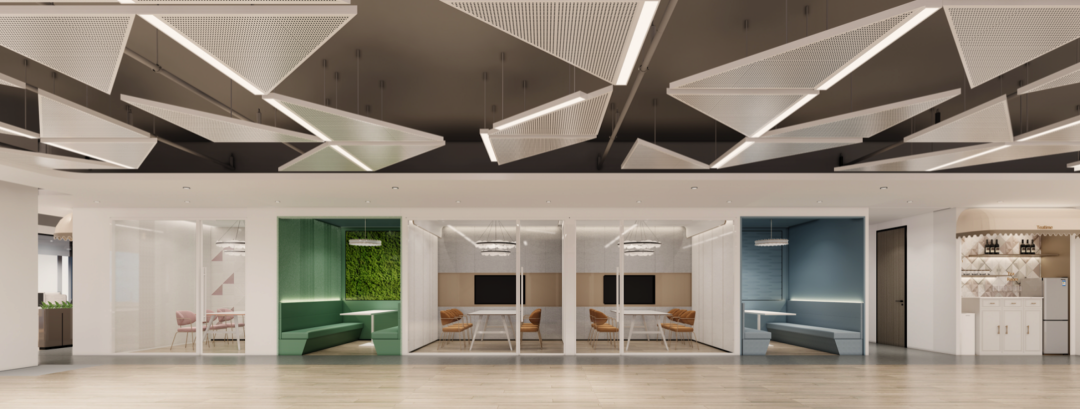 兴天通电讯规划出一片相连的小型会议空间,不同色彩主题既区分了会议空间,也让会议室本身成为了一处“装饰”。