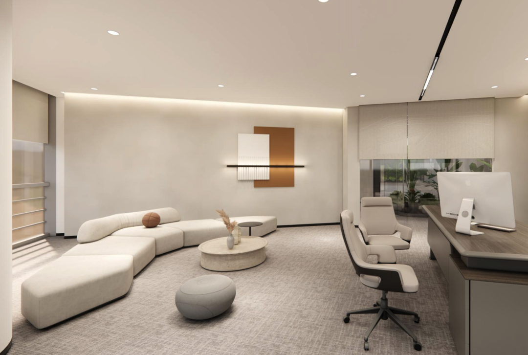会客室在延续中式风格的基础上,通过色彩搭配让氛围更轻松。