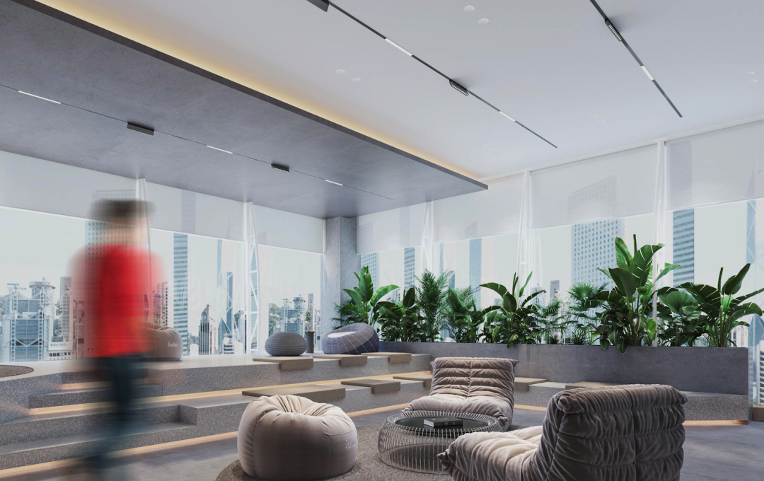渣打银行将会客区设置在通透的窗边,窗外景色一览无余,为访客创造了充分的放松条件。