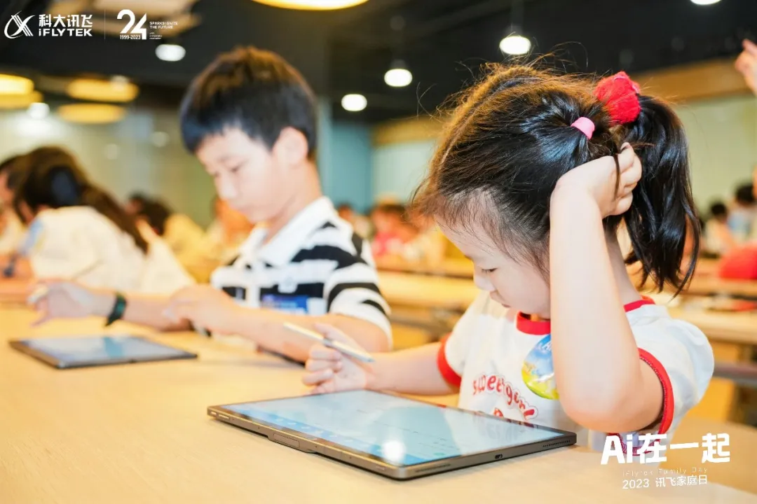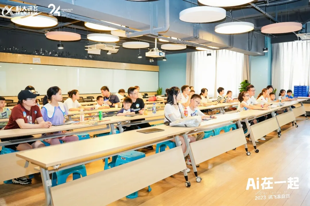 而科大讯飞家庭日则以多种形式带小朋友们感受了AI的魅力,不仅有有趣的AI体验课和AI科普讲座,还安排了讯飞展厅参观,讲解老师将人工智能技术拆解成不同学龄段的孩子们可理解的技术故事,通过现场图文展示,带领大家进一步思考如何实现学习、生活、工作等各场景的“人机耦合”,感受讯飞高科技的魅力。