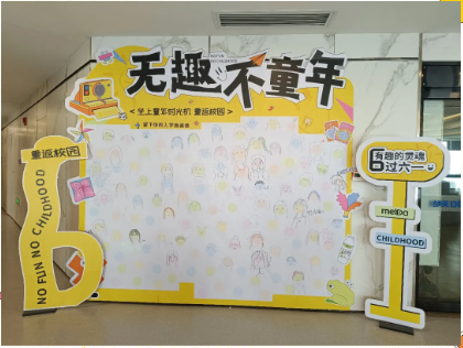 a.重返校园,美哒在儿童节这天向公司的大朋友们发送了“入学邀请”,大家一起重返美哒校园,入学仪式(自画像签到)、思维课(趣味问答、断句大挑战)、课间活动(翻花绳、铁皮青蛙)、体育课(踢毽子、投篮)、小卖部(礼物),有木有上学那味了?