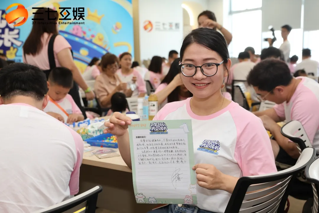 另外,三七互娱还为每位小朋友都准备了印有三七互娱企业价值观身份的工牌,仪式感满满。