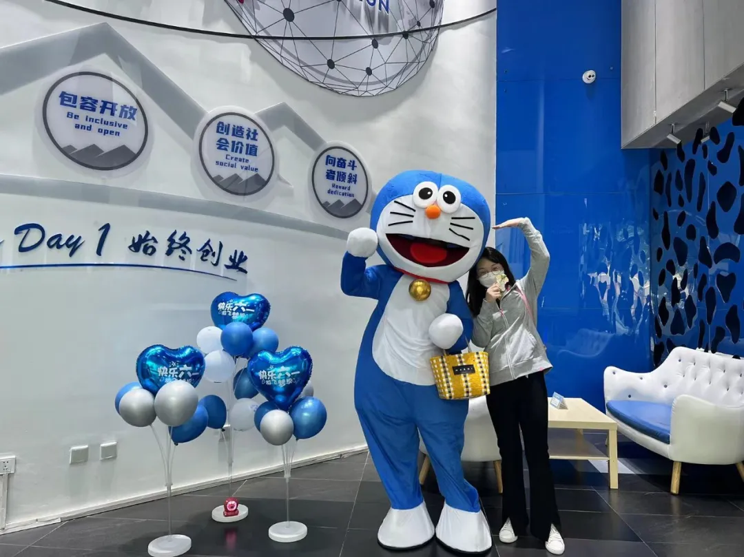 昆仑万维不仅用气球、丝带对办公室进行了布置,还将我们的“童年玩伴”——哆啦A梦请到了现场,为大家发放儿童节礼物,仪式感满满。