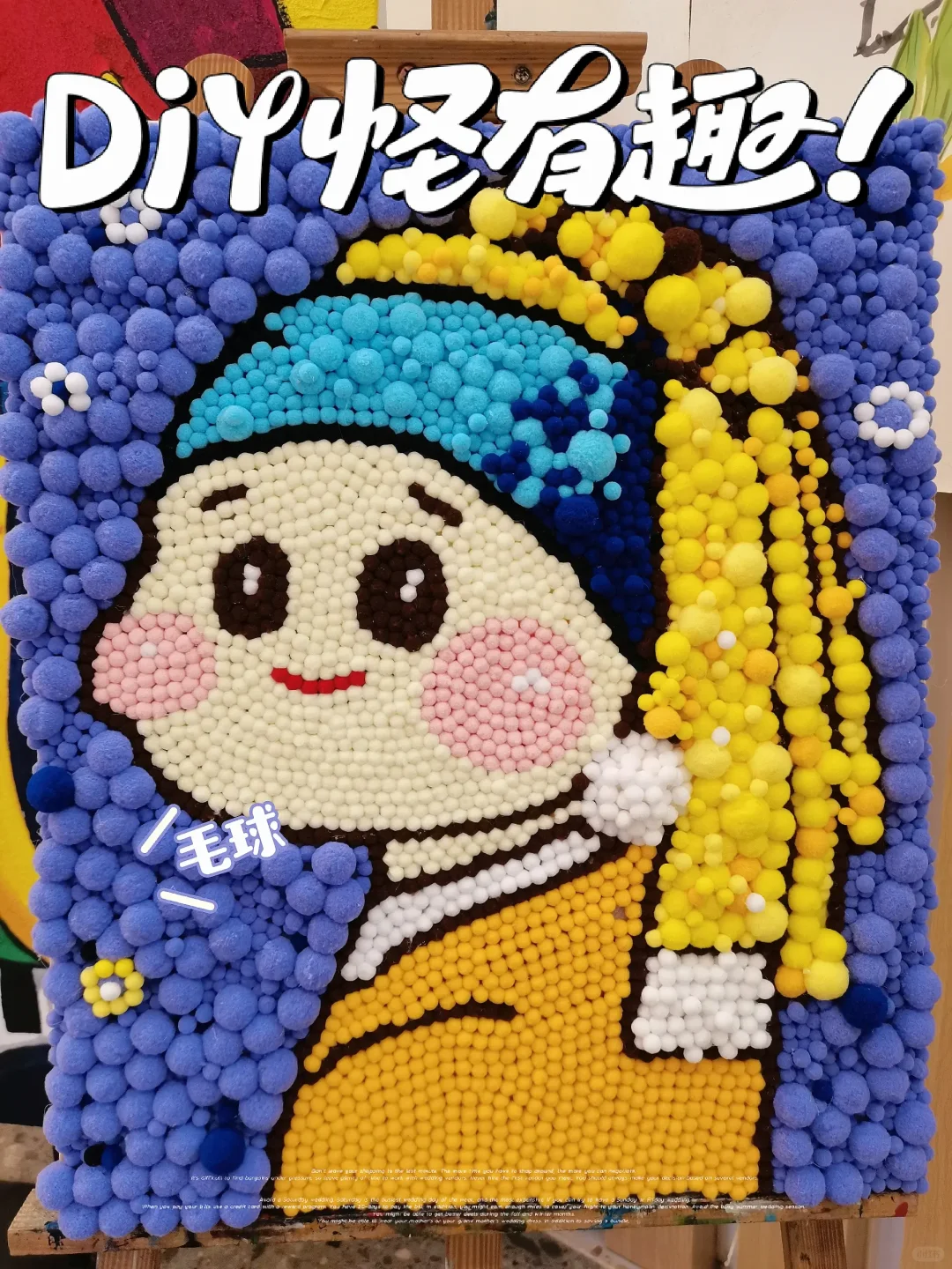 画画不一定用笔,绒绒软软的毛球也可以画出好看的画。可以在儿童节组织大家来一场毛球贴画diy,超级治愈。