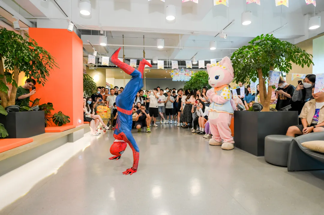 蝉大师&蝉妈妈邀请真人npc来到了办公室为大家表演助兴,迪士尼新晋女明星【玲娜贝儿】,现场C位Solo甜美舞蹈;还有乘风破浪出圈的极乐净土,童年回忆美少女战士和蜘蛛侠,现场超级嗨皮!