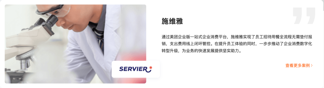 美餐是全国领先的企业级餐饮消费平台,为客户提供员工餐、活动餐、到店消费、创新员工餐厅、科技合作等综合用餐服务。美餐服务的企业级客户数量达数千家,合作商户数万家。