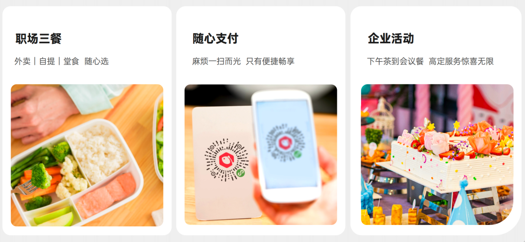 拥有员工订餐系统,多种福利发放形式、多样结算方式、企业结算周期不影响与商户的结算