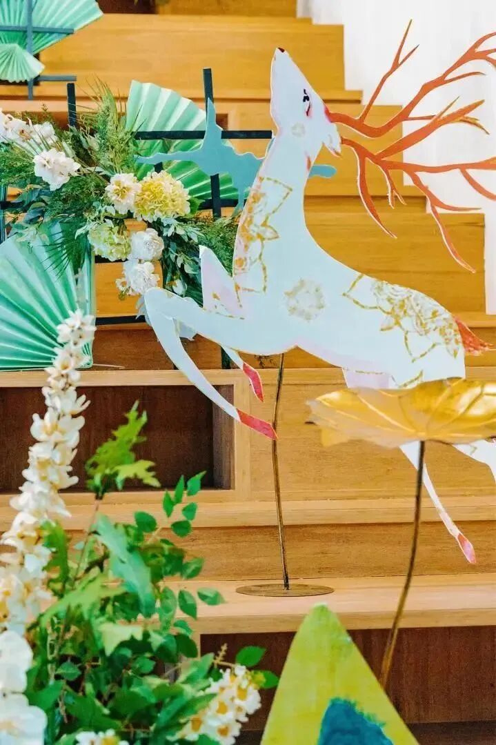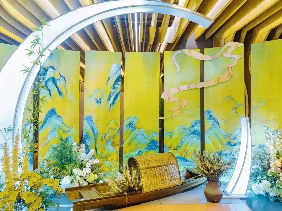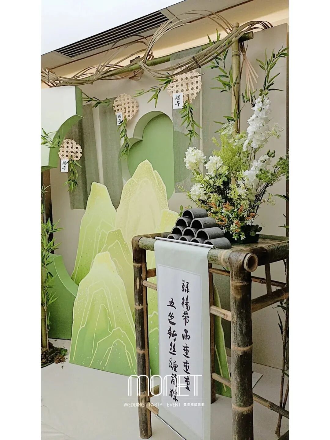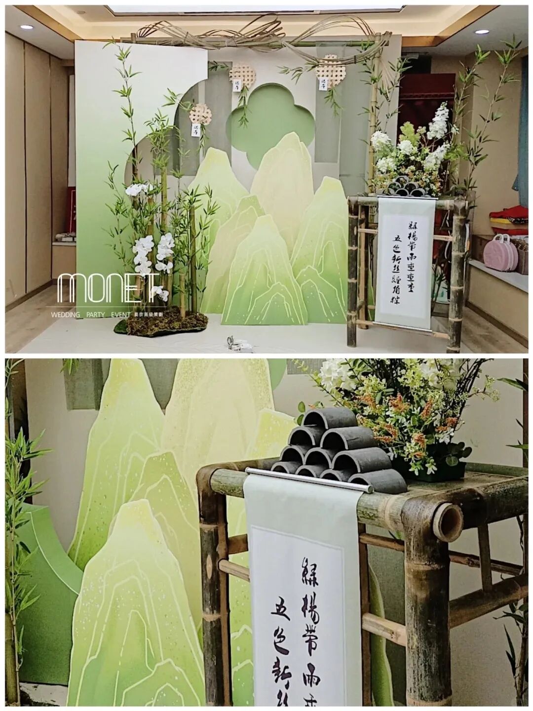 还有近两年超流行的“新中式”风格,清新的渐变绿搭配竹编工艺以及竹子竹叶等设计。