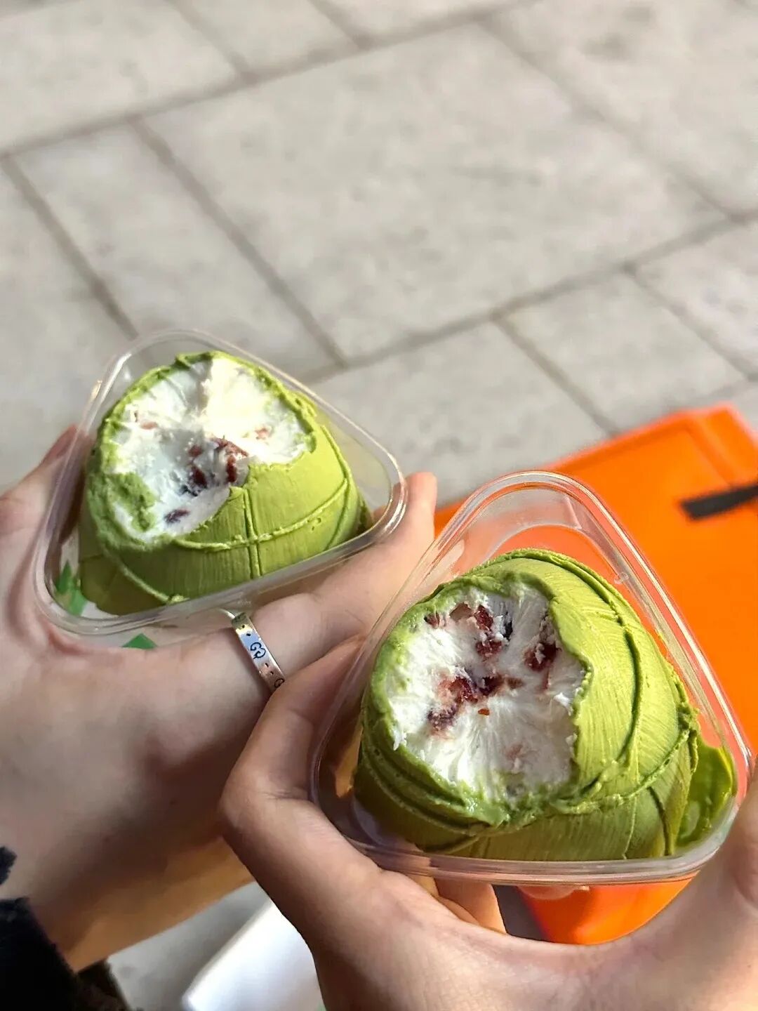 超流行的冰激凌粽子也可以融入到下午茶中,抹茶味的“粽叶”+蔓越莓酸奶冰激凌的内馅,看上去就非常可口!