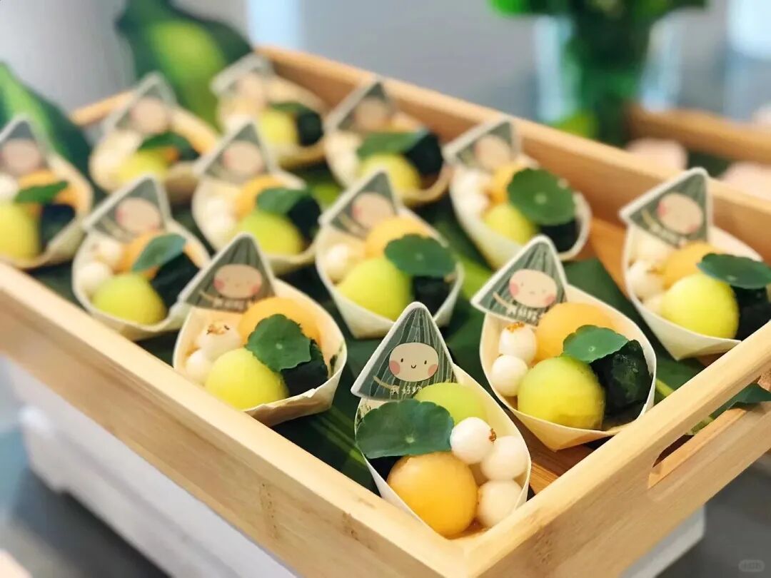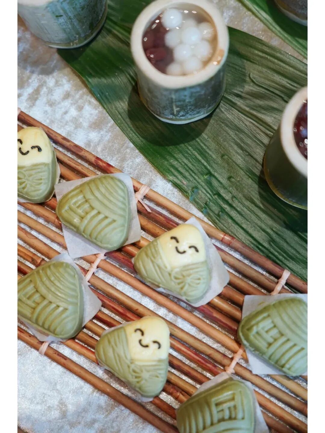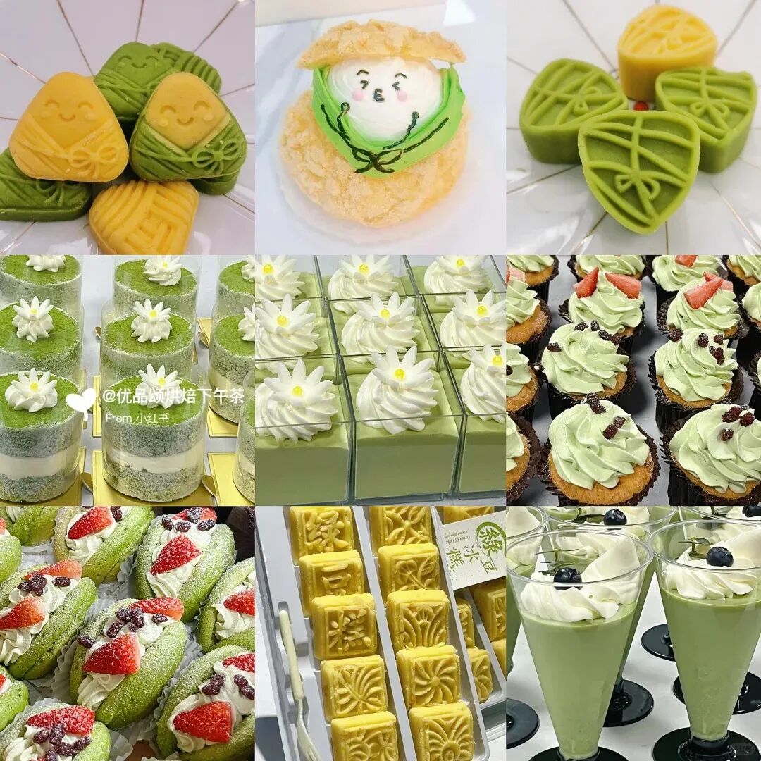 除了粽子,还可以准备绿豆冰糕、抹茶小蛋糕、粽子泡芙等以绿色为主题的各类小甜品~