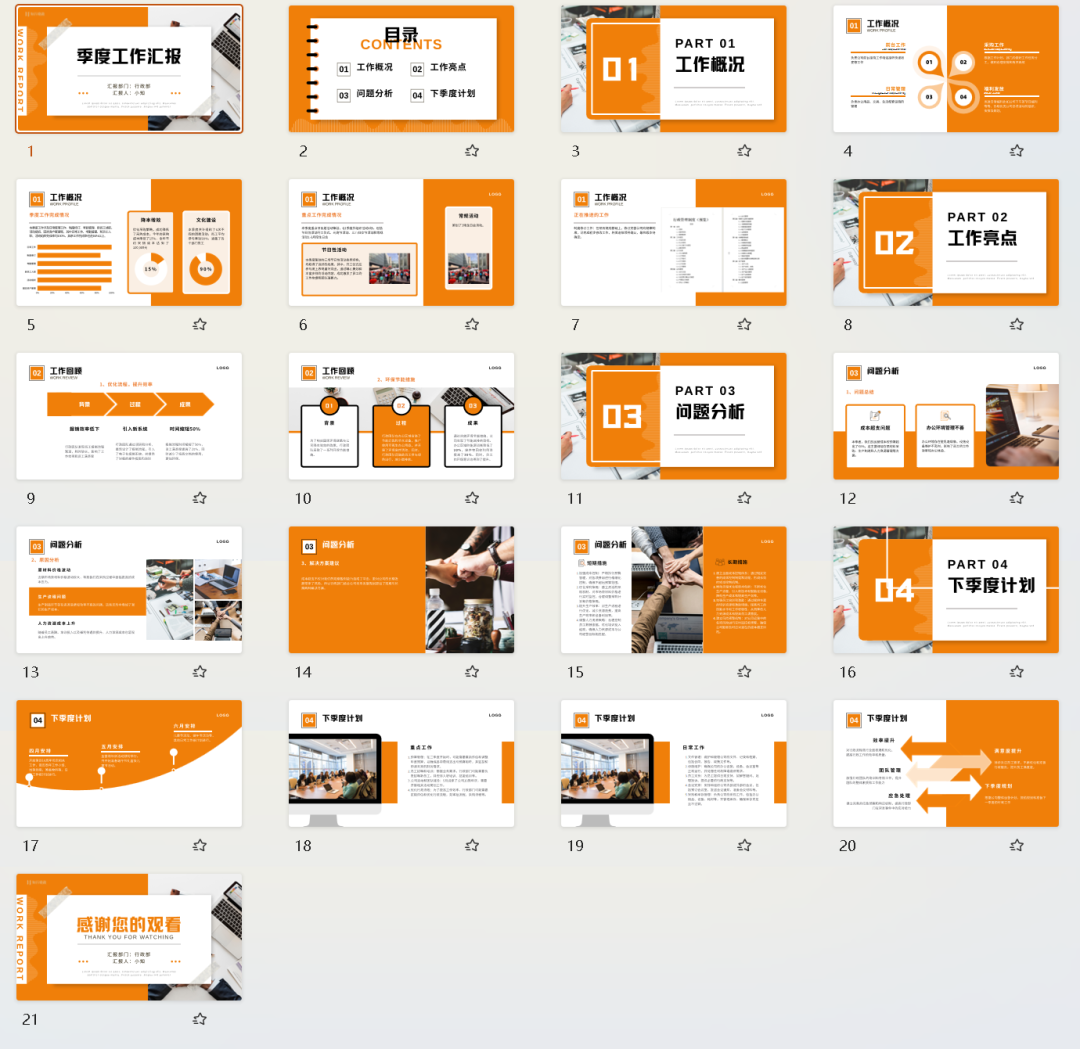 最后,小知整理了一份季度工作汇报PPT模版,供大家参考使用,在【知行晓政】公众号后台私信回复【季度报告】即可获取。