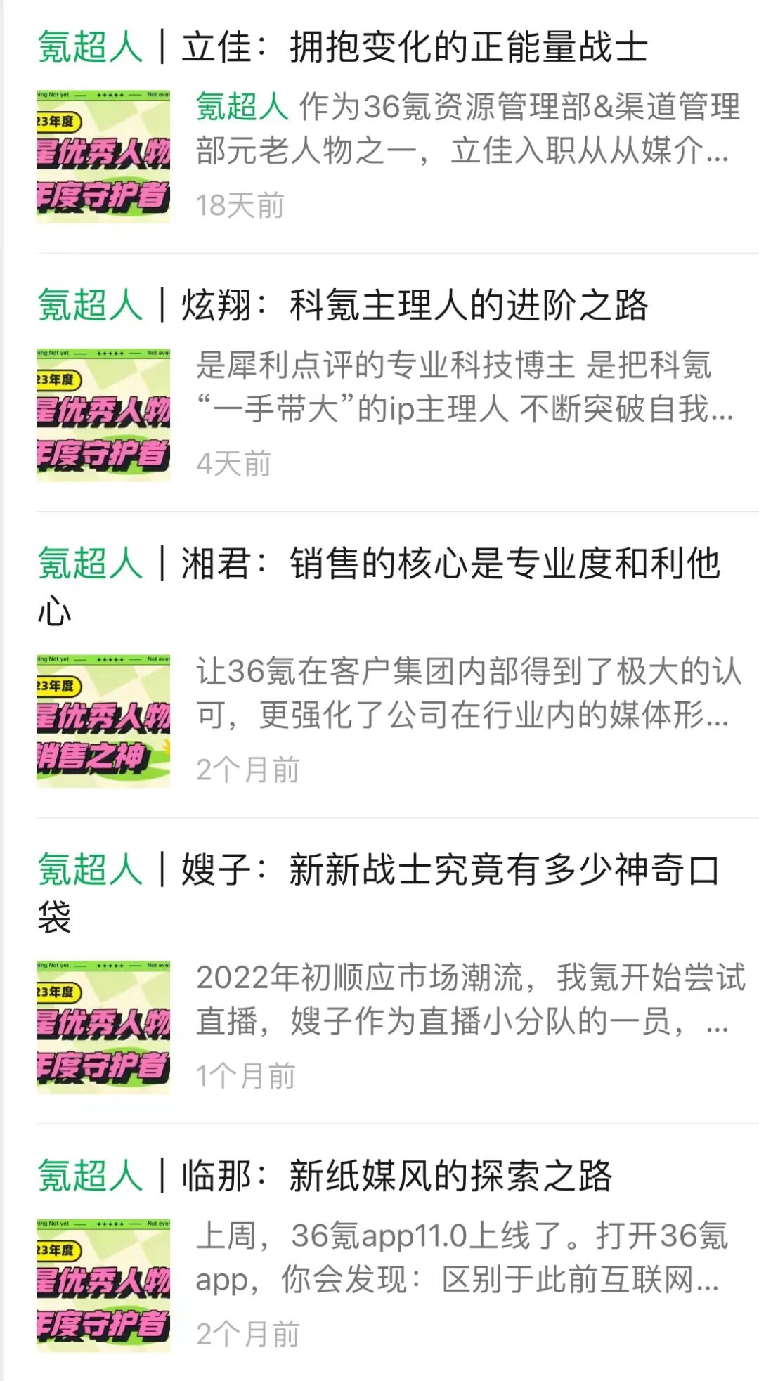 36氪为了鼓励氪星人的优秀表现,不仅在2023年年底评选出了年度优秀氪星人物,更是在今年推出了2023年度优秀氪星人物故事特辑,和大家分享各位与“正能量、强协同、高效执行”有关的故事。拥抱变化的正能量战士、科氪主理人的进阶之路、新新战士究竟有多少神奇口袋……每一个故事都很精彩。