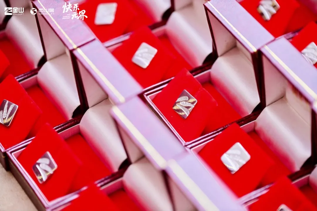 在西山居第二届荣誉成就体系个人奖颁奖盛典中,用分别印有西山居和金山logo的奖牌代替了传统的奖杯,很有企业特色。