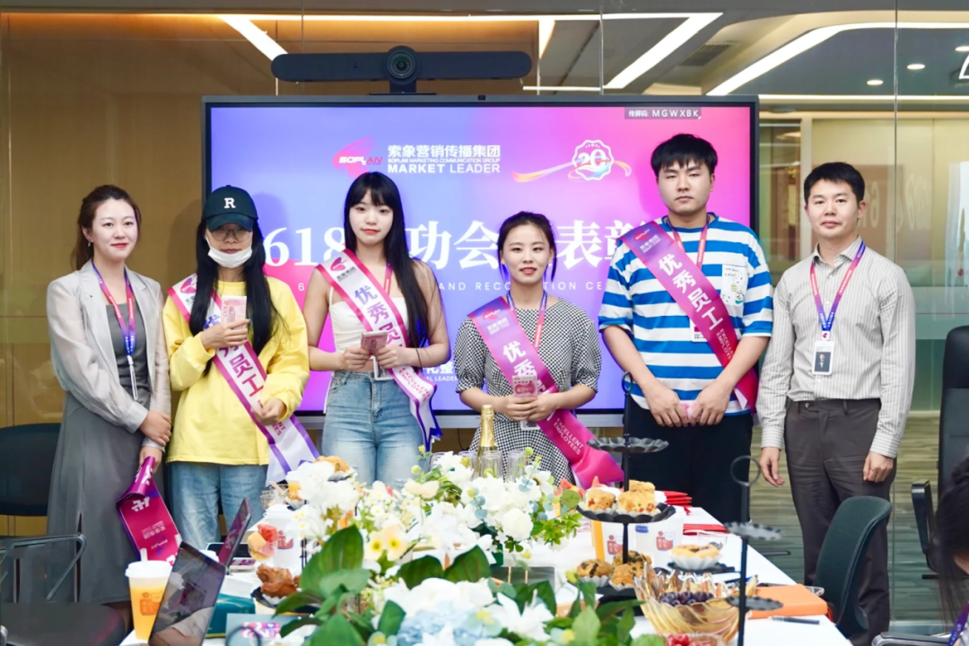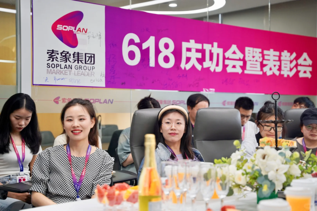 去年618结束后,索象集团举办了618功庆会暨表彰会,对10位先进个人进行了表彰和现金奖励,然后7个先进小组分别做了10分钟的演讲。