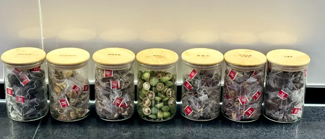 还有蝉妈妈的茶水间,四季花茶不间断供应,还贴心地准备了红枣片、红糖,关爱到每一位员工~