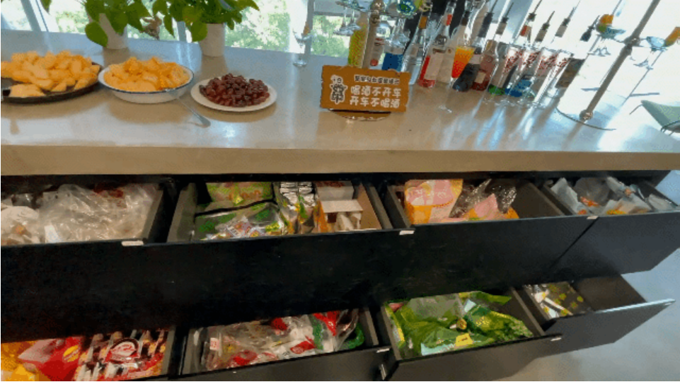 每个柜子里都摆满了零食,帮员工实现“小时候吃不完的零食梦”,饿了随时随地get精致下午茶,再也不用点外卖了!