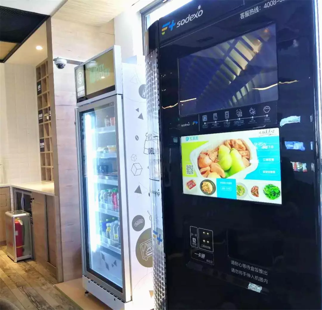 比如在索迪斯的茶水间,就摆放着一台无人零售机,员工们简单操作几步,就可以完成点餐!过不了一会即可享用热乎乎的美食,真正体验到餐饮新零售带给员工们“拿完即走”的便捷~