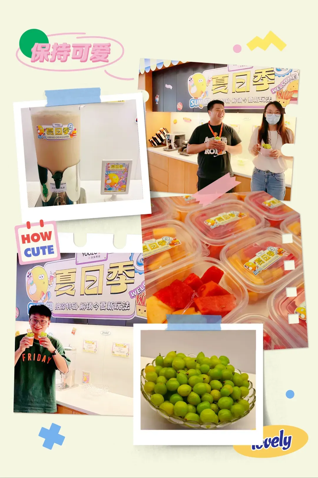 再比如游族网络在茶水间会适时提供多种新鲜水果——冰镇荔枝,西瓜、蜜桃和晴王,还搭配了好喝的生牛乳绿豆爽&大红袍牛乳茶。