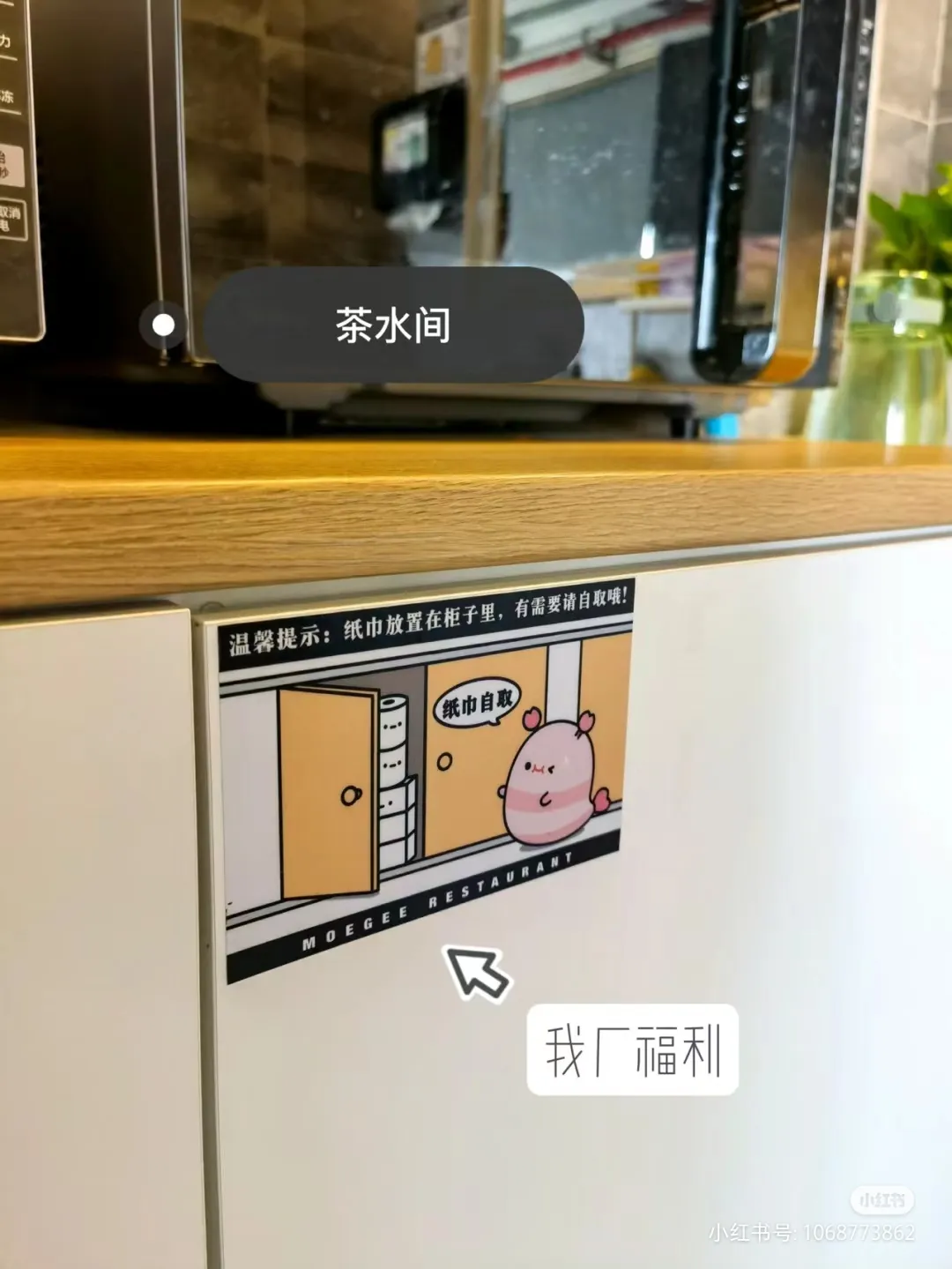 足够贴心的茶水间,总会提前为员工考虑一些问题,因此温馨的小贴士是完善细节的关键一步。