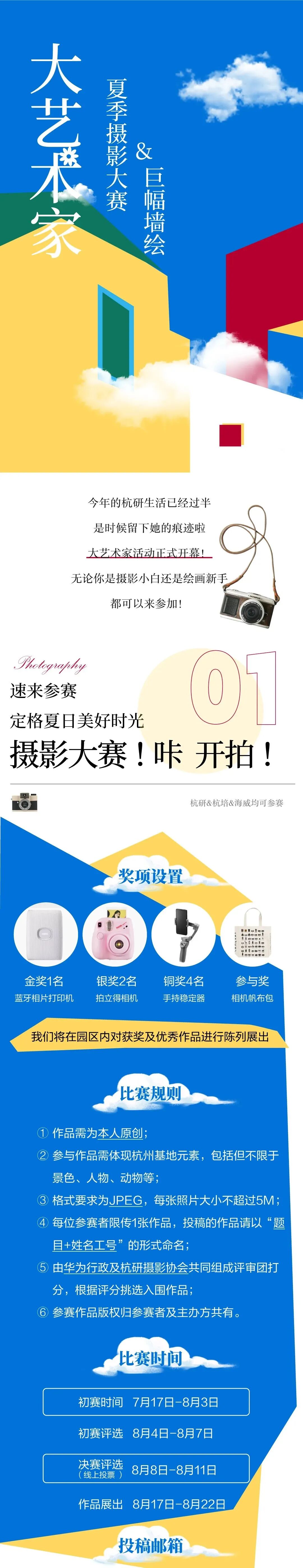 例如华为杭州区去年举行过一场“大艺术家”的夏季摄影赛&巨幅绘画比赛,鼓励员工用摄影和绘画的方式定格在华为杭州区的夏日美好时光,获奖者可收获蓝牙相片打印机、拍立得相机、手持稳定器、相机帆布包等精美礼品。