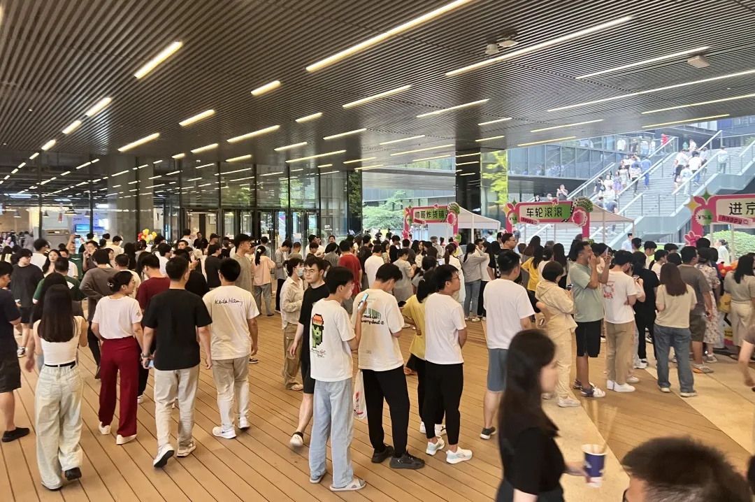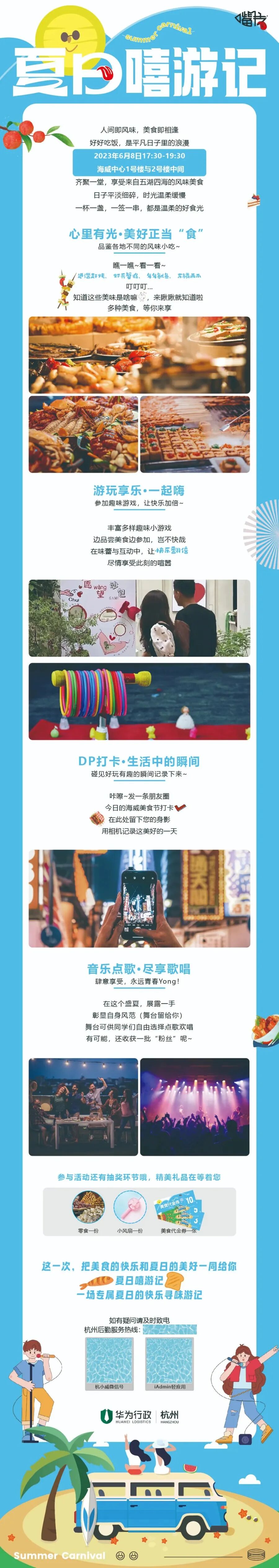 华为去年以“夏日嘻游记”为主题举行了一场吃喝玩乐唱的综合夏季活动,员工们可以一边品尝丰富美食,一边参加趣味游戏,还可以露天点歌嗨唱,简直不要太欢乐~