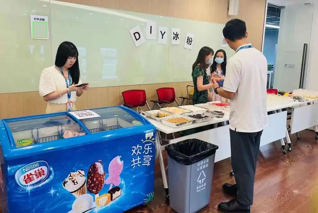 携程集团也是为内部员工提供了水果口味甜品和雪糕,还可选择现场DIY冰粉,简直不要太幸福~
