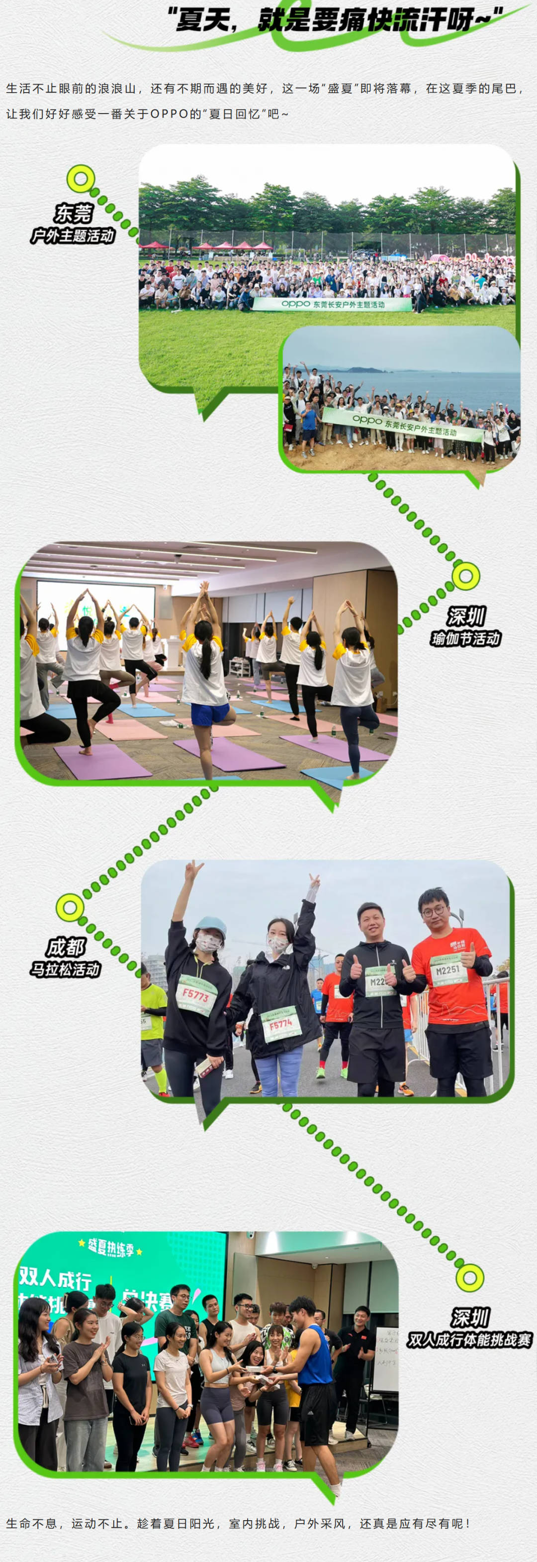 OPPO集团去年也是举办了一系列夏季运动相关的活动,如瑜伽节活动、马拉松活动和双人成行体能挑战赛,生命不息,运动不止。