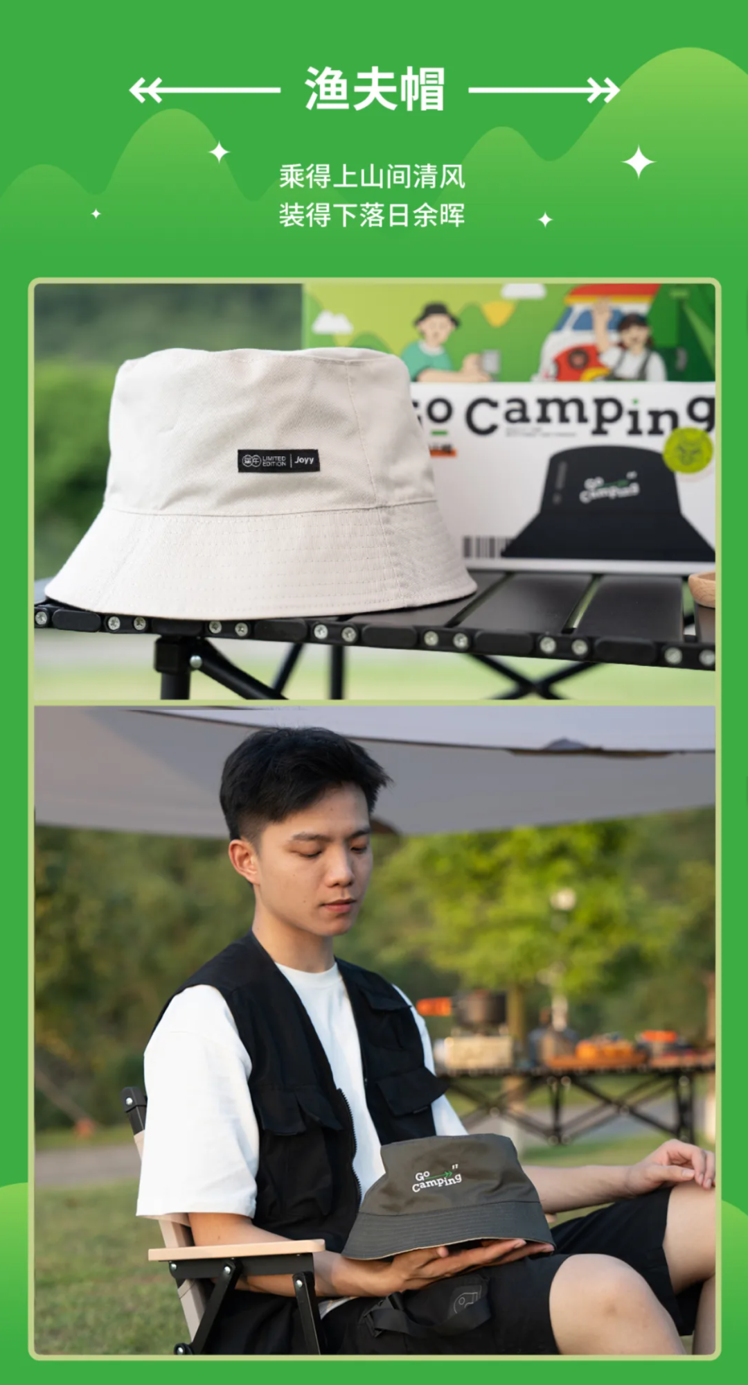 快手同样在端午礼盒准备了定制的渔夫帽,防晒好还颜值高~