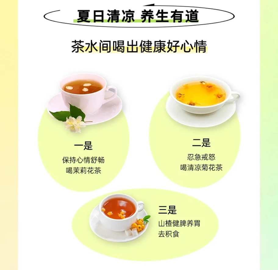 凤凰网同样在茶水间准备了夏日养生茶——茉莉花茶、清凉菊花茶和山楂开胃茶。