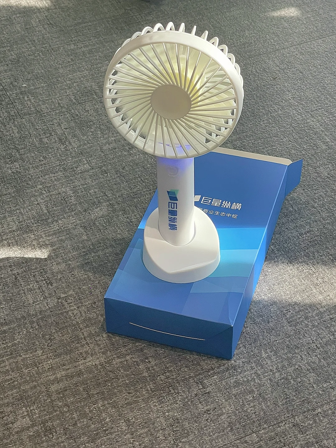 某公司的夏季消暑礼包中就包含了小风扇,可放置也可手持,不要太贴心~