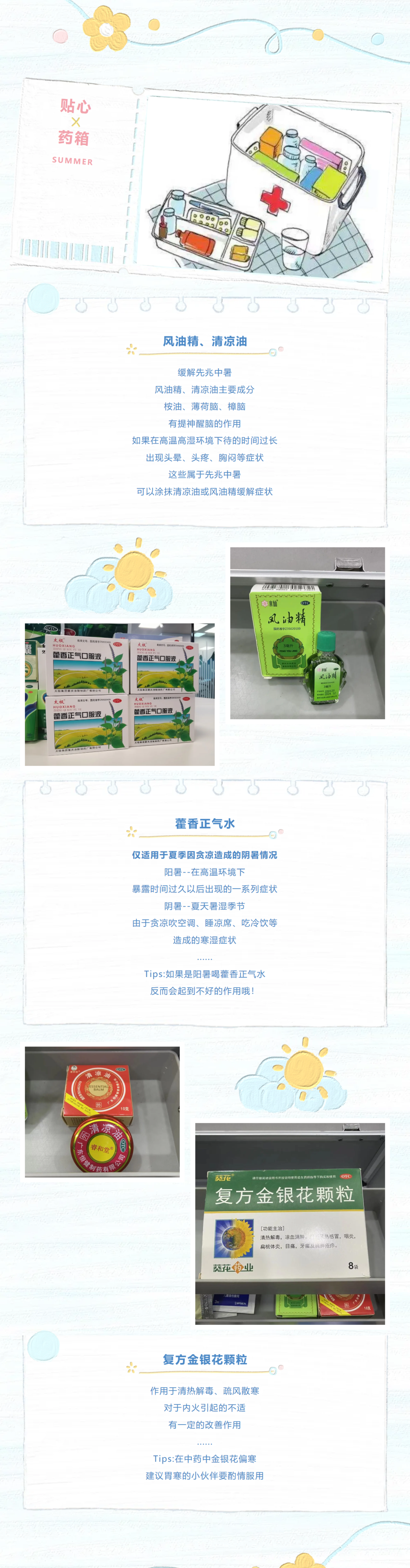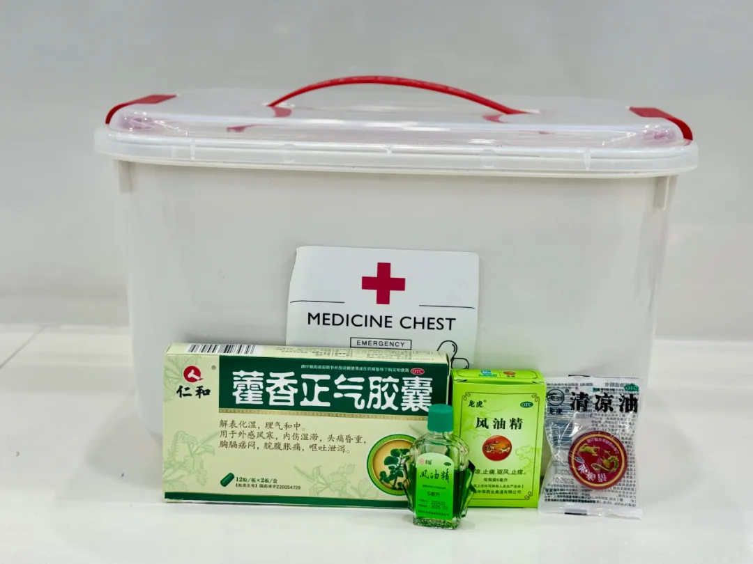 夏季天气炎热,难免遇到员工中暑身体不适等情况,因此需要特别针对这个季节准备药箱里的药品。例如新创娱游的前台医药箱为员工提供了藿香正气胶囊、风油精、清凉油等防暑药品,有需要可自取。