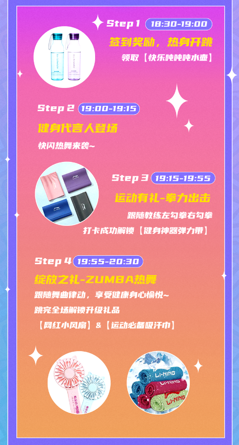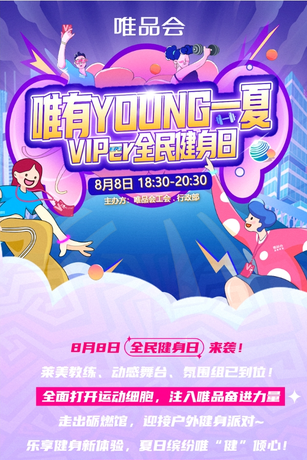 比如唯品会就举办过一场“唯有YOUNG一夏”全民健身的活动,让员工跟着健身教练一起热舞打拳,最后还可以获得水壶、小风扇和吸汗毛巾等礼品。