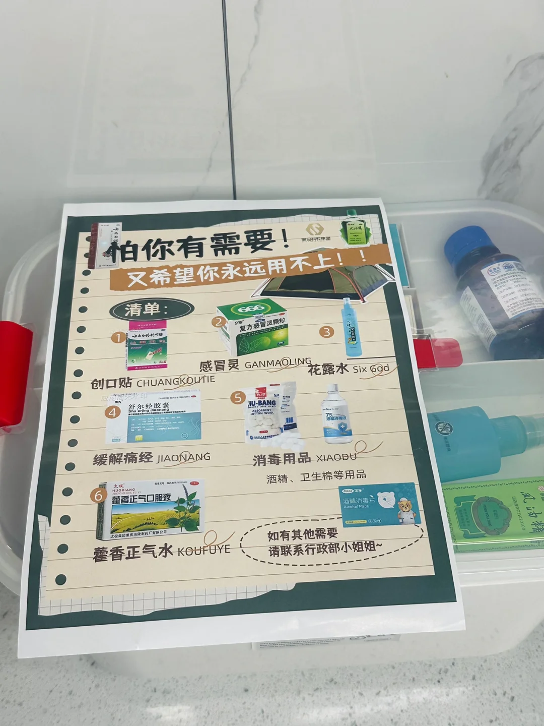 某公司行政在药箱上贴心准备了一张使用清单,让员工们对药品一目了然。