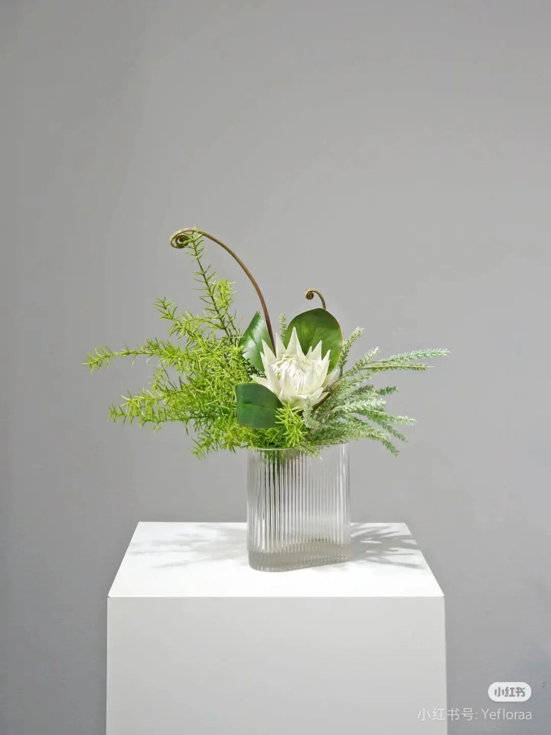 白绿配色的花卉是最不容易出错的选择,低调不抢眼,但目之所及却让视觉非常的舒服。