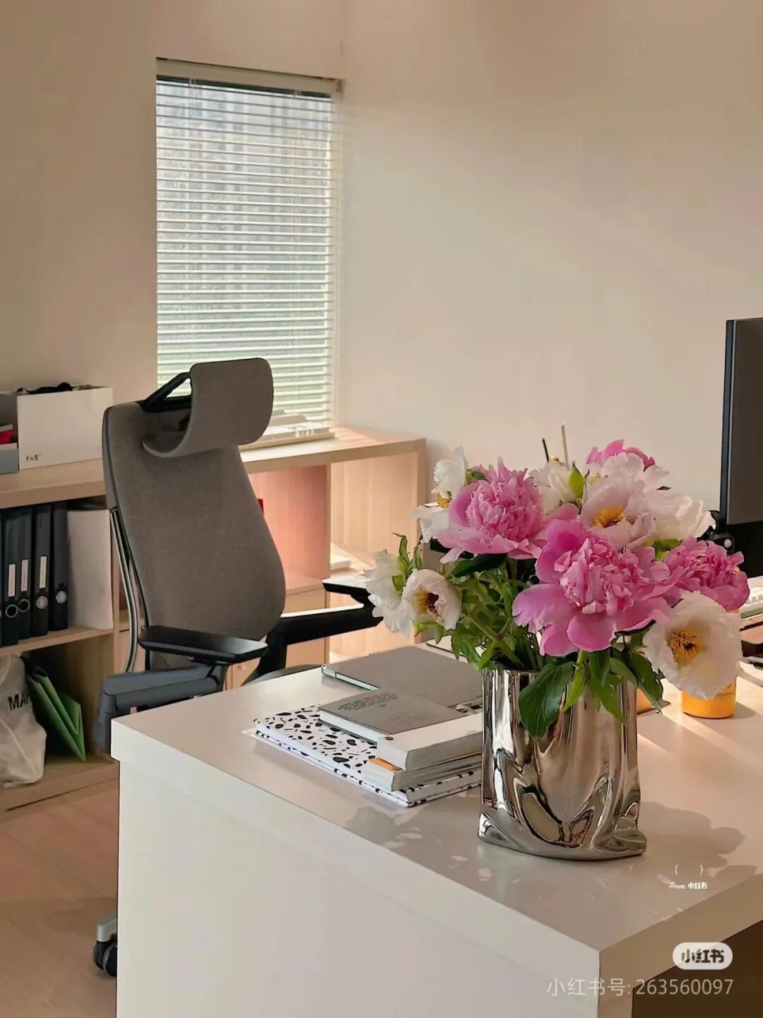 如果是女性领导,可以更多选用一些粉色系的花卉提亮环境。