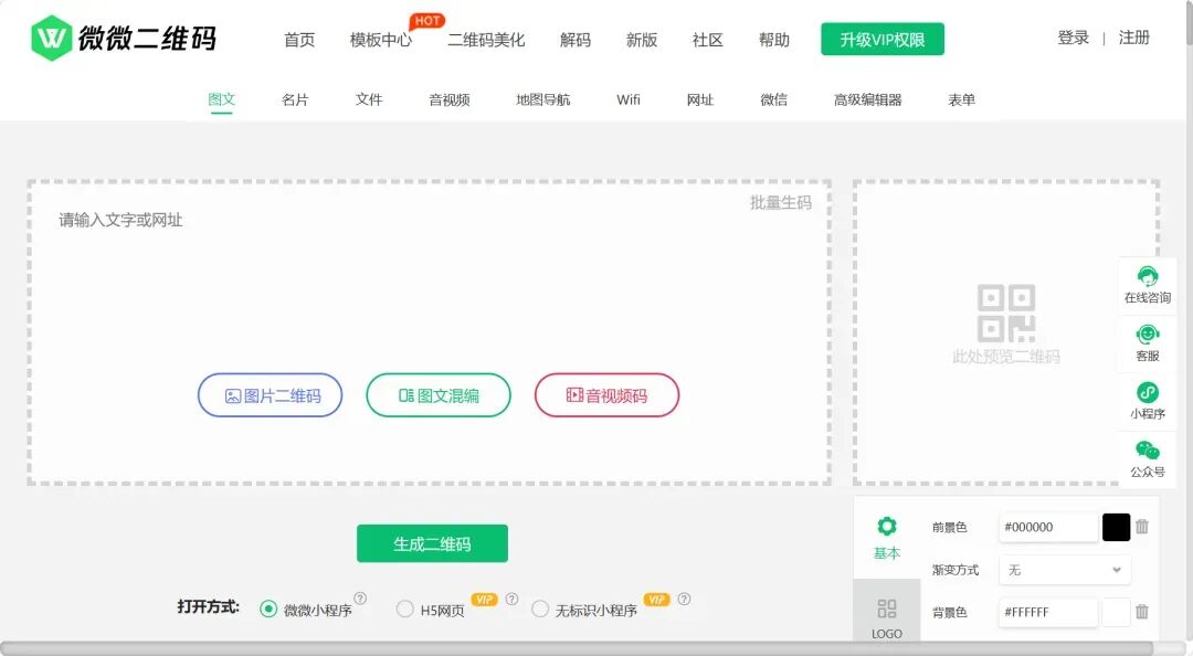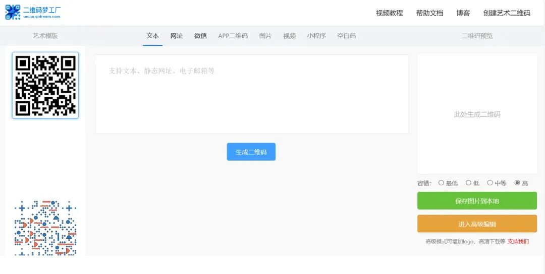 无需登录,免费使用,二维码样式多