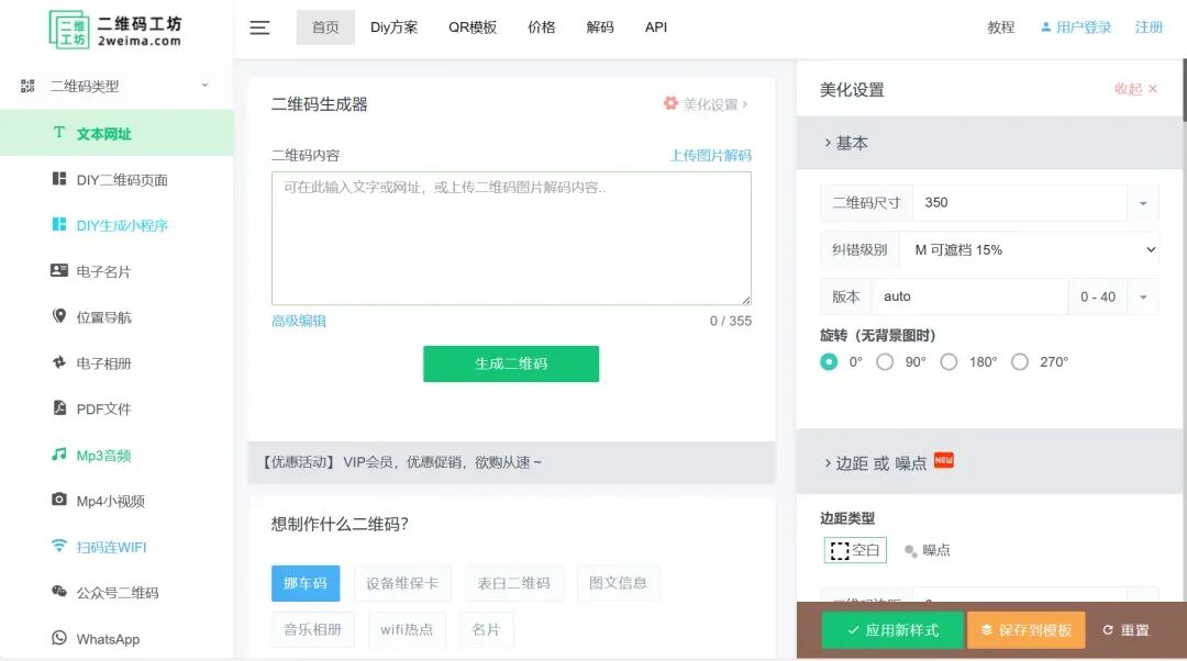 有不同的二维码样式,基础功能免费使用,有VIP版本