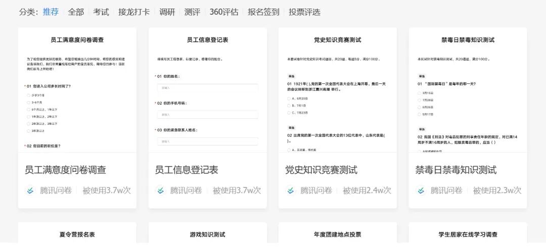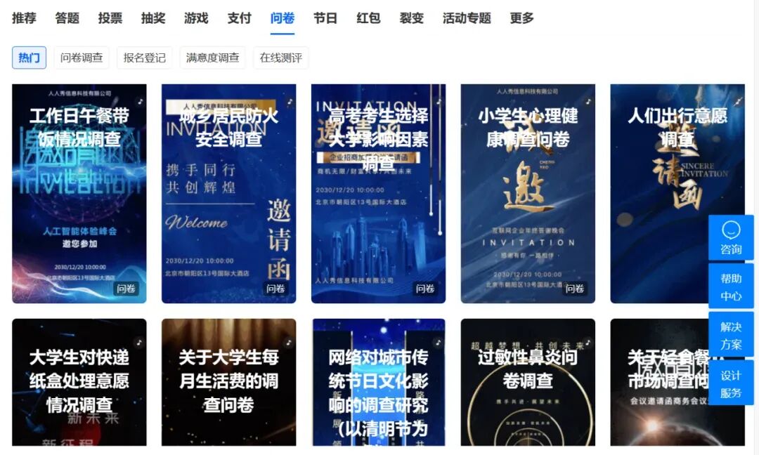 全部免费,模版多,满足多场景调研需求。