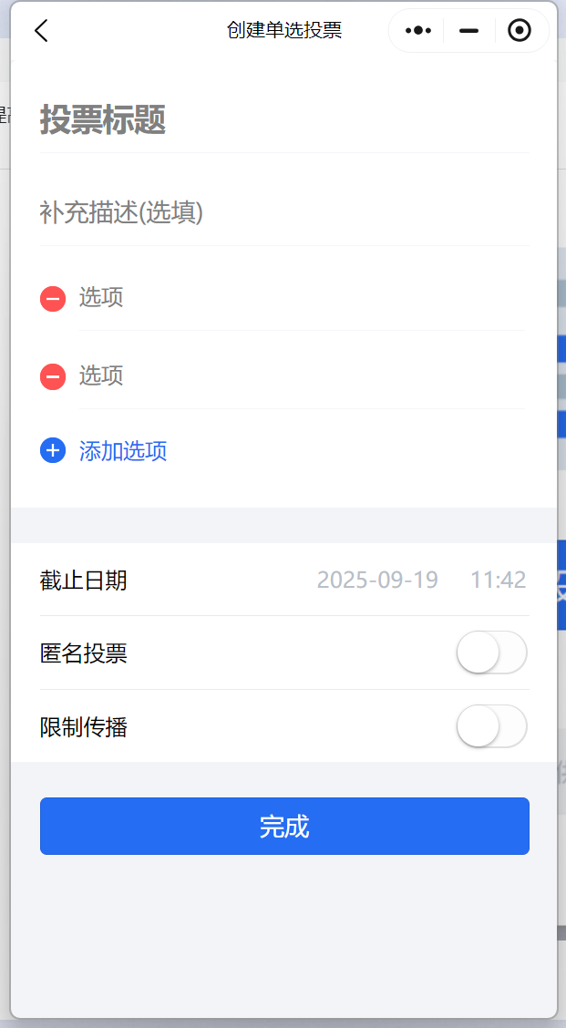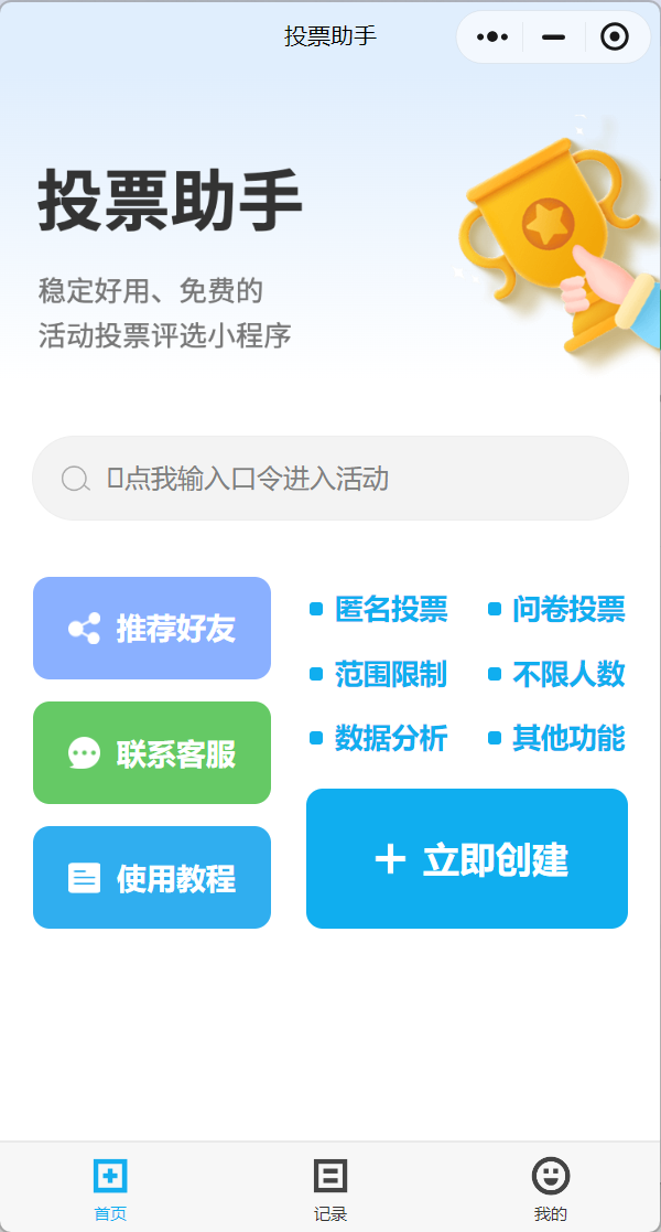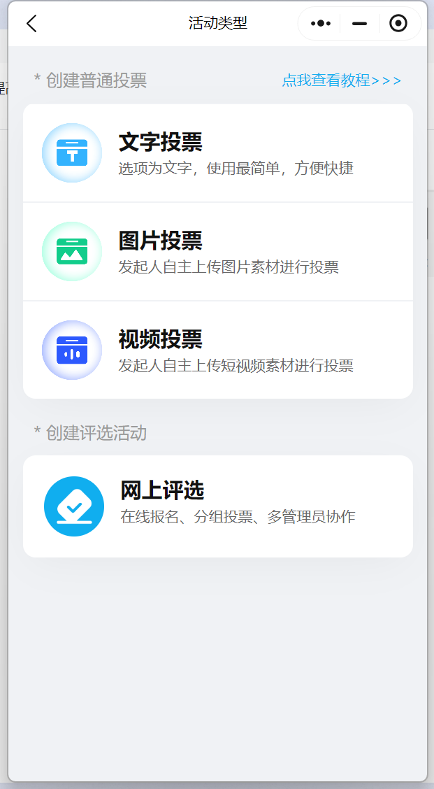 腾讯投票是腾讯官方推出的投票工具,主要面向微信用户,提供了方便快捷的投票功能。主要用于调查、选举等小规模投票,投票形式可以是单选或多选(数量不受限制),但主要是文字投票,不支持图片、视频等多媒体内容。只适合简单的投票需求,如公司内部调查、小型选举等。