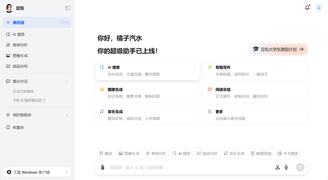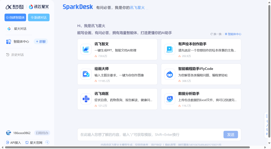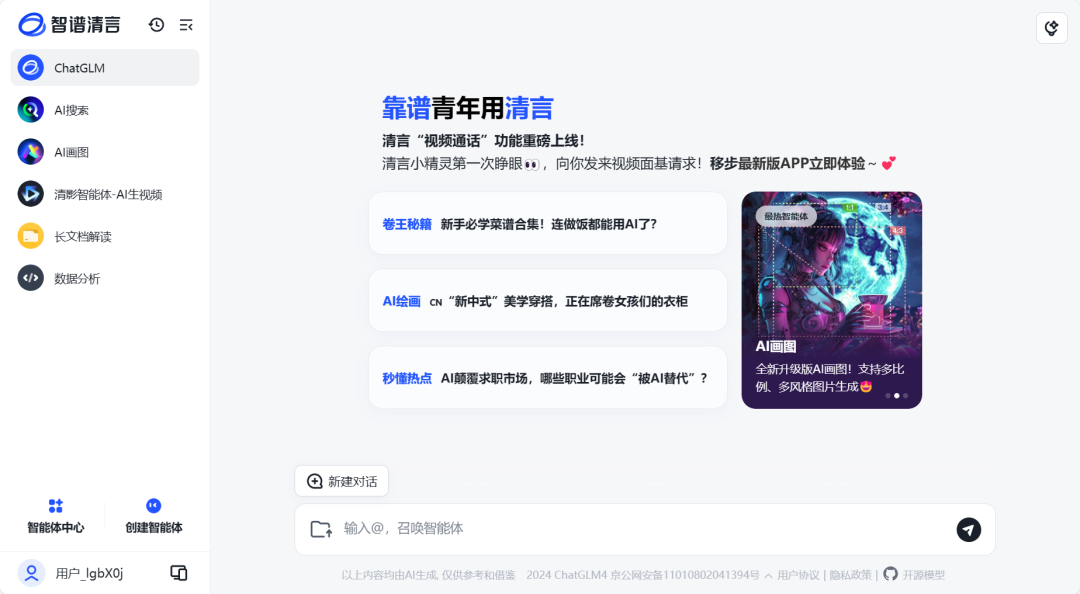 功能很全,支持图像生成、智能对话、长文本解读、搜索、图表生成等。