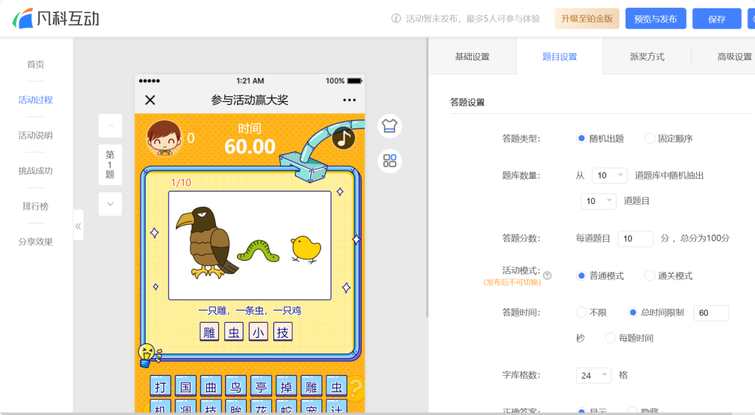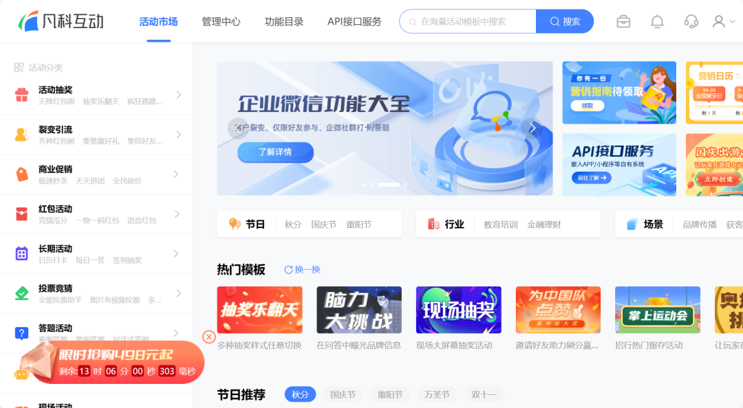 凡科互动有很多H5小游戏模板免费提供,可以快速创建活动内容,一键发布。